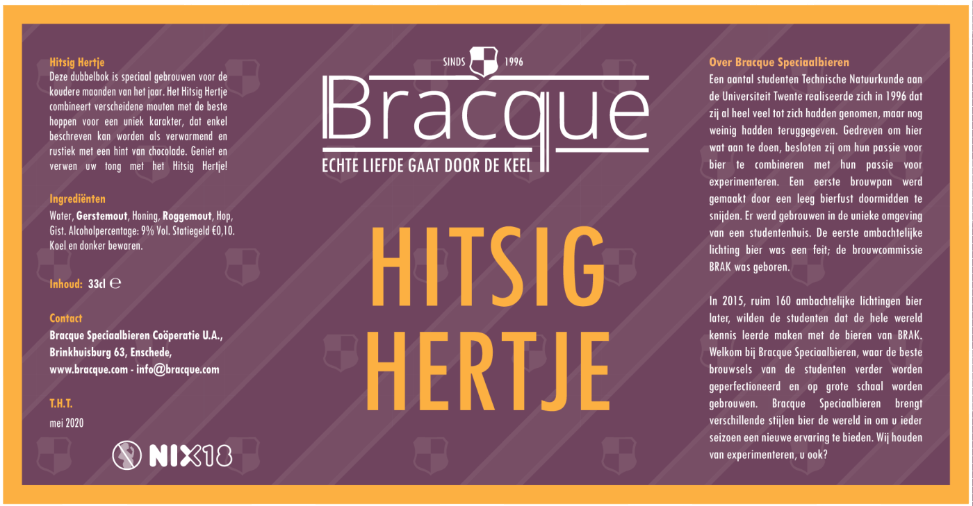 Het eerste seizoensbier van Bracque speciaalbieren! Inmiddels 2 opeenvolgende jaren gebrouwen wegens aanhoudend succes.