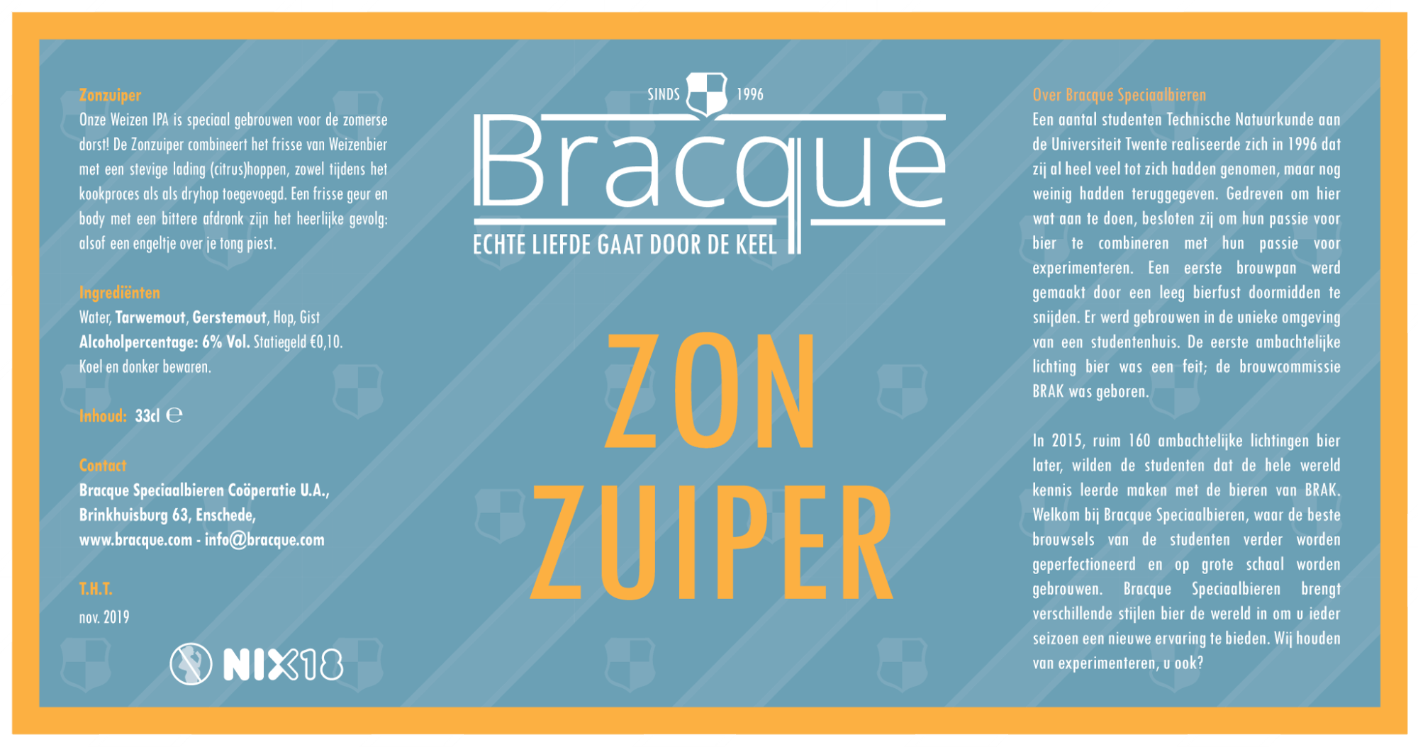 De Zonzuiper is een Weizen IPA welke het frisse van Weizenbier combineert met een stevige lading (citrus)hoppen.